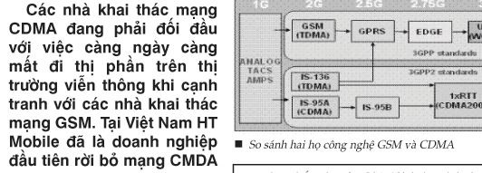 Các nhà khai thác mạng CDMA đang phải đối đầu với việc càng ngày càng mất đi thị phần của mình trên thị trường viễn thông trong nước khi cạnh tranh với các nhà khai thác mạng GSM. Danh sách này ngày càng dài ra, và tại Việt Nam lại đang có HT Mobile.
